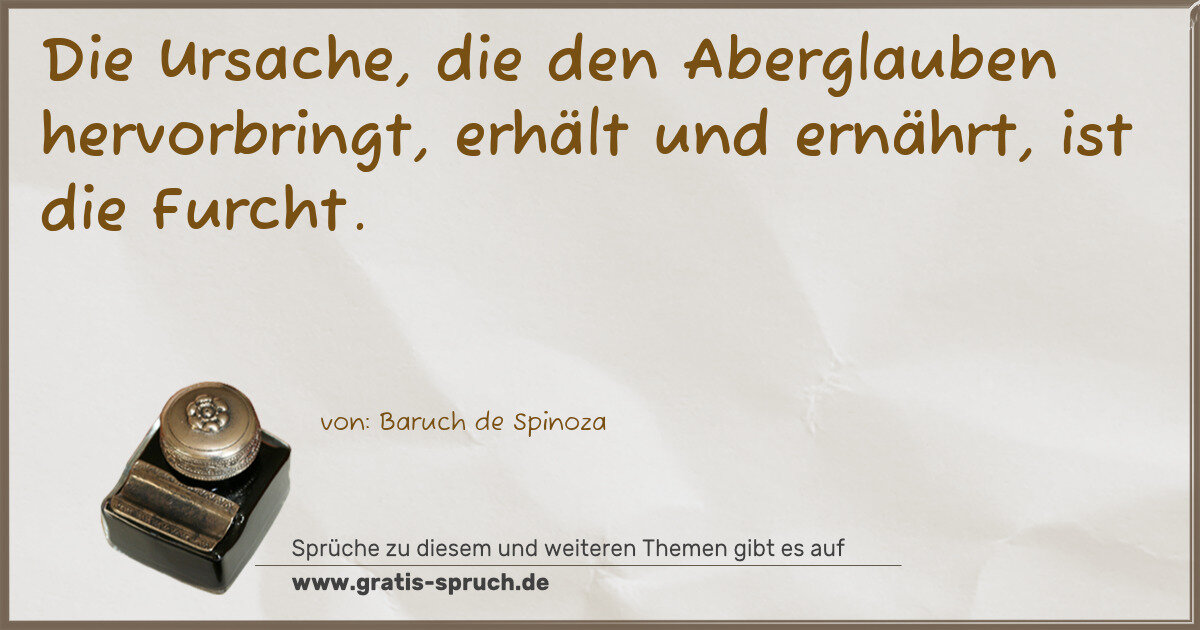 Die Ursache, die den Aberglauben hervorbringt, erhält und ernährt, ist die Furcht.