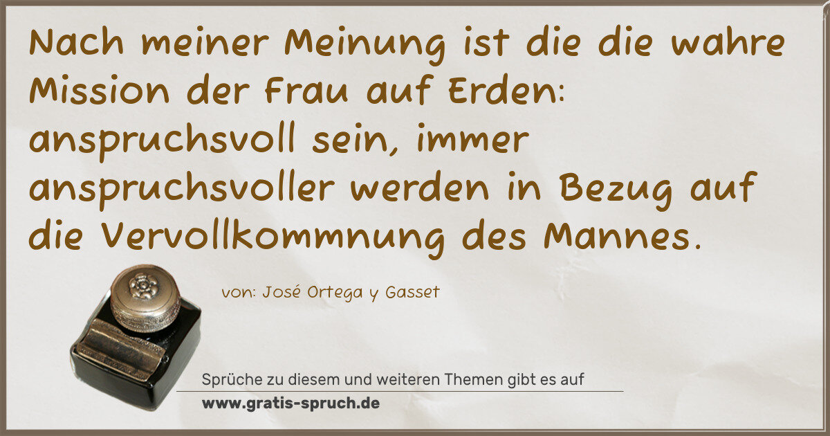 »Nach meiner Meinung ist die die wahre Mission der Frau auf Erden: anspruchsvoll sein, immer anspruchsvoller werden in Bezug auf die Vervollkommnung des Mannes.