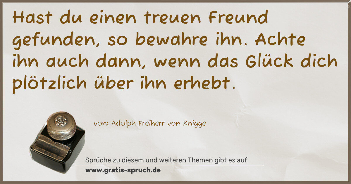 Hast du einen treuen Freund gefunden, so bewahre ihn. Achte ihn auch dann, wenn das Glück dich plötzlich über ihn erhebt.