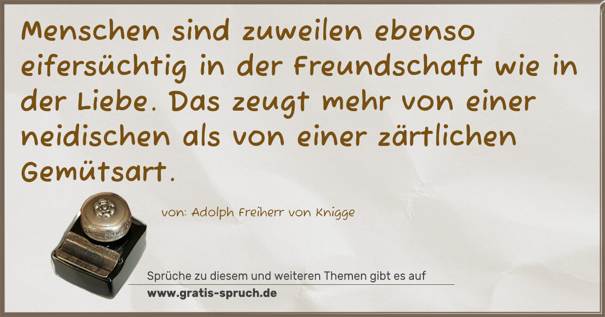 »Menschen sind zuweilen ebenso eifersüchtig in der Freundschaft wie in der Liebe. Das zeugt mehr von einer neidischen als von einer zärtlichen Gemütsart.