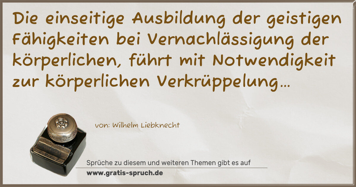 »Die einseitige Ausbildung der geistigen Fähigkeiten bei Vernachlässigung der körperlichen, führt mit Notwendigkeit zur körperlichen Verkrüppelung…
