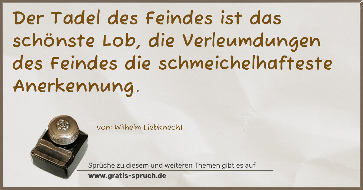 Der Tadel des Feindes ist das schönste Lob, die Verleumdungen des Feindes die schmeichelhafteste Anerkennung.