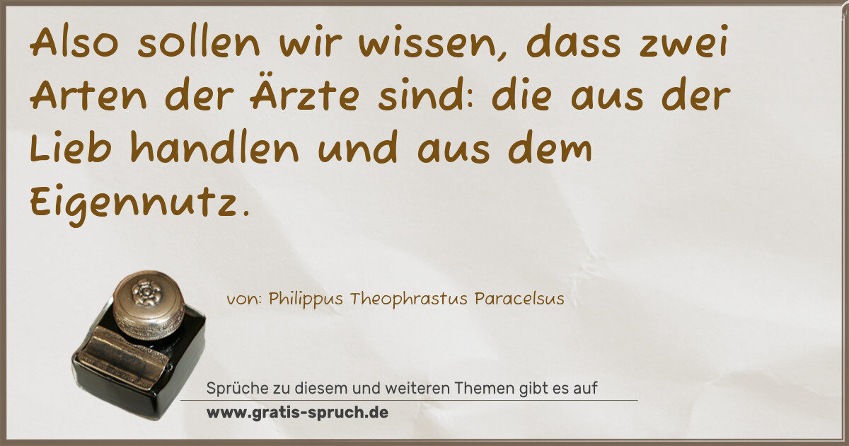 Also sollen wir wissen, dass zwei Arten der Ärzte sind: die aus der Lieb handlen und aus dem Eigennutz.
