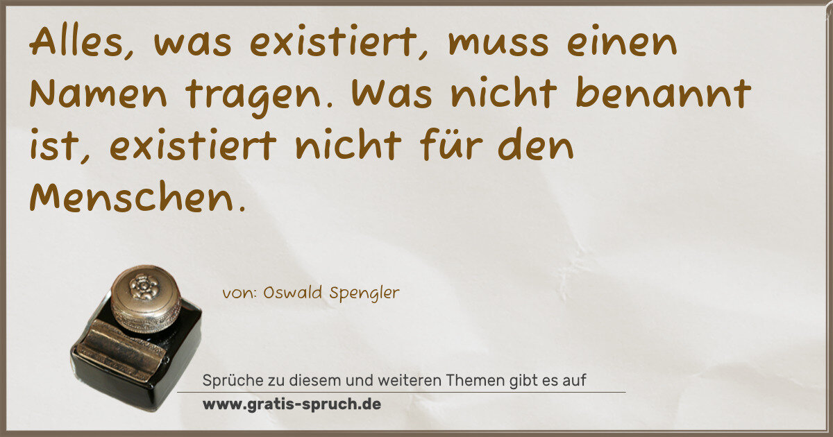 Alles, was existiert, muss einen Namen tragen. Was nicht benannt ist, existiert nicht für den Menschen.