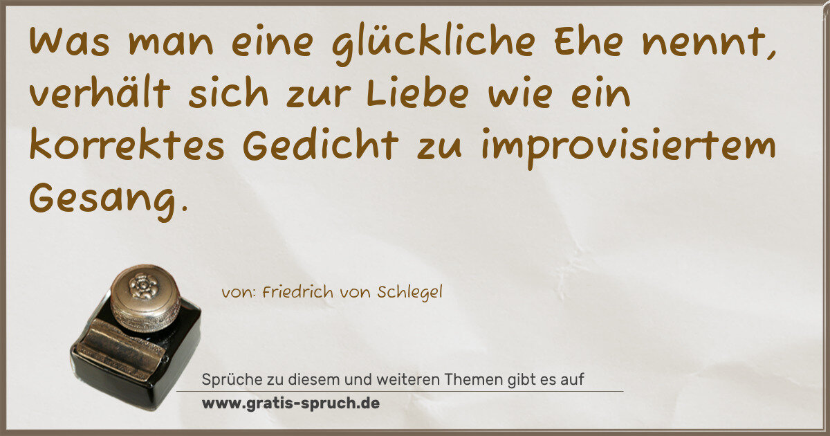Was man eine glückliche Ehe nennt, verhält sich zur Liebe wie ein korrektes Gedicht zu improvisiertem Gesang.
