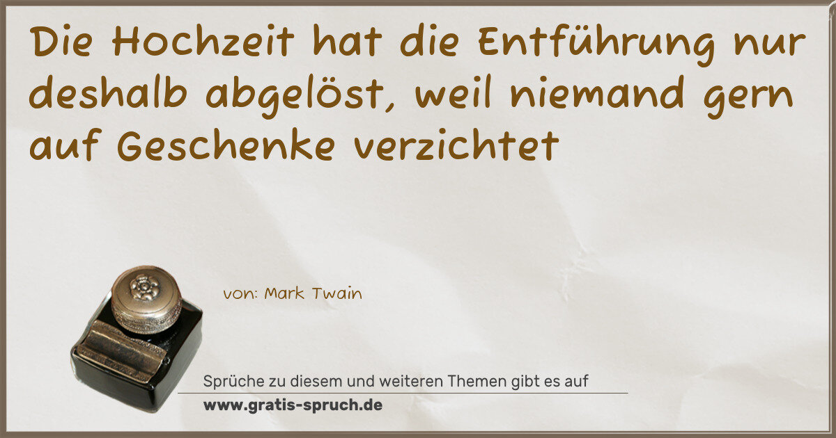 Die Hochzeit hat die Entführung nur deshalb abgelöst, weil niemand gern auf Geschenke verzichtet