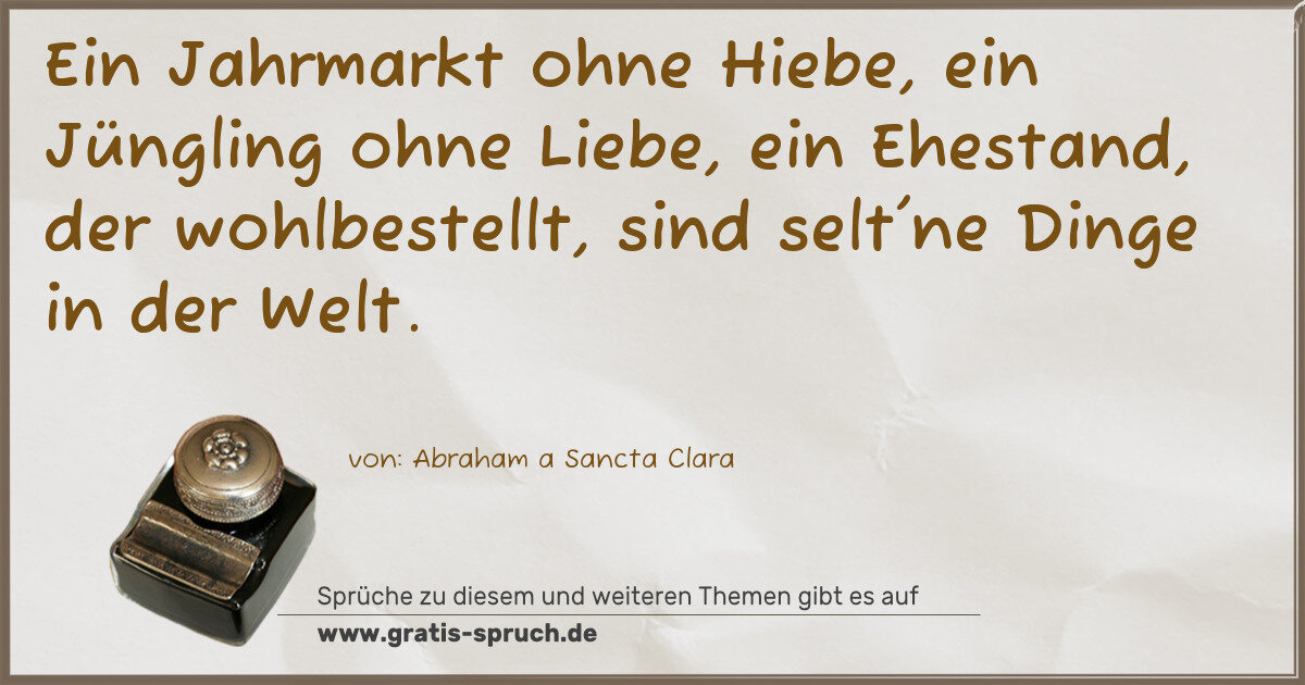 Ein Jahrmarkt ohne Hiebe, ein Jüngling ohne Liebe, ein Ehestand, der wohlbestellt, sind selt'ne Dinge in der Welt.