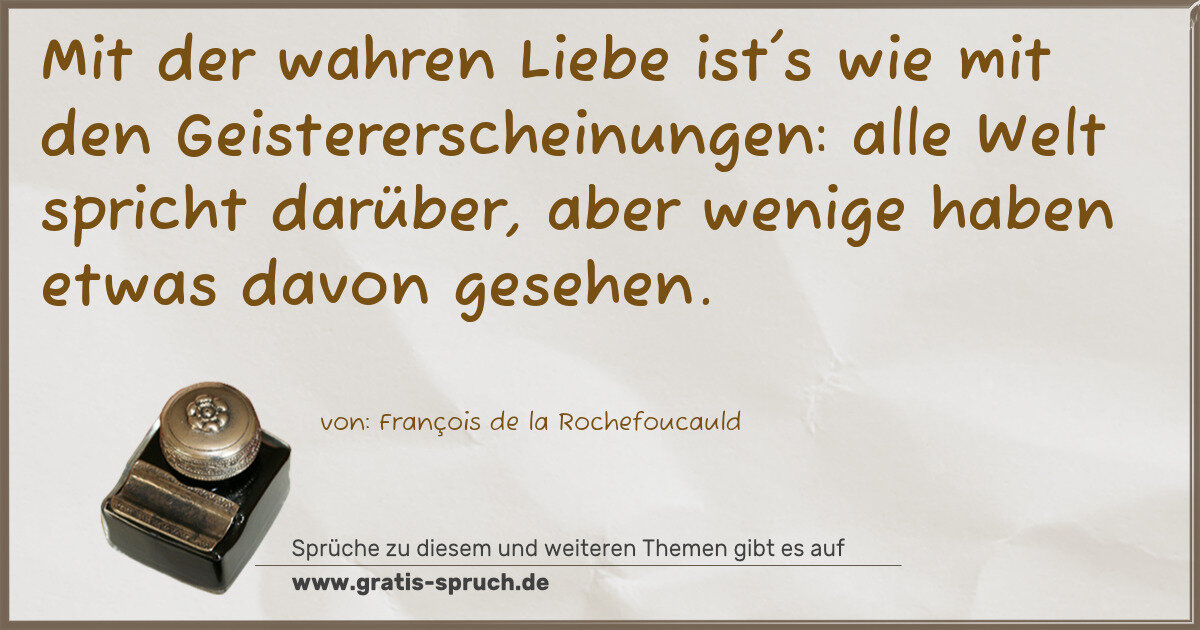 Mit der wahren Liebe ist's wie mit den Geistererscheinungen: alle Welt spricht darüber, aber wenige haben etwas davon gesehen.