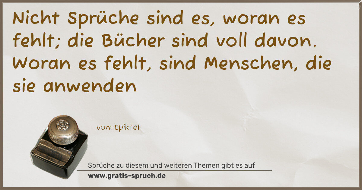 Nicht Sprüche sind es, woran es fehlt; die Bücher sind voll davon. Woran es fehlt, sind Menschen, die sie anwenden