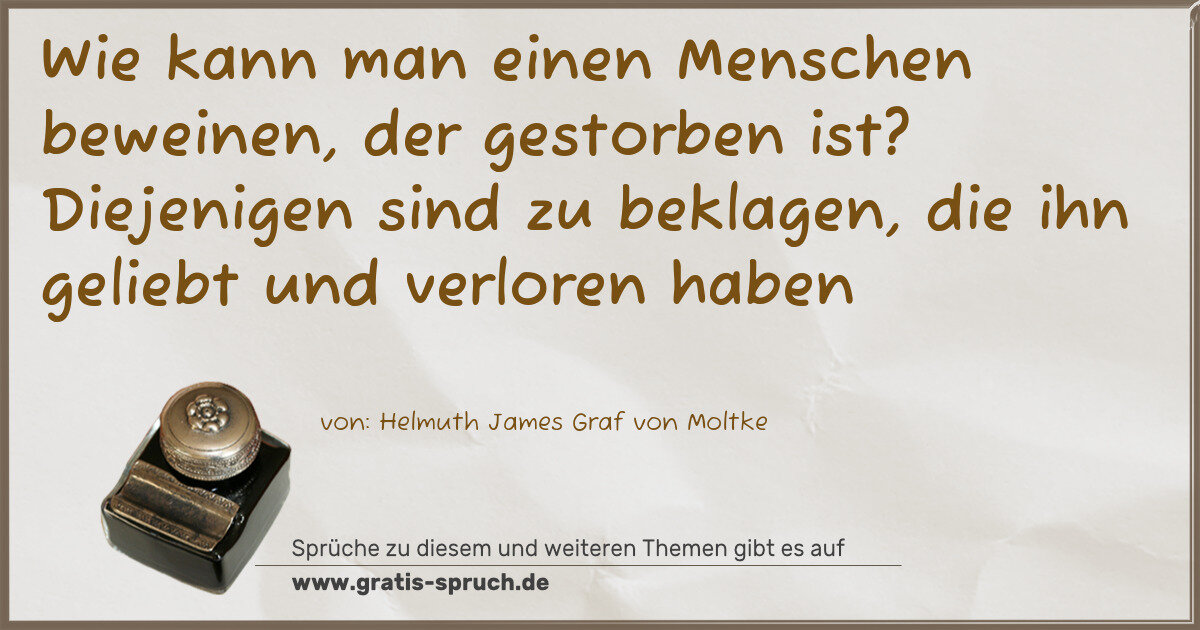 »Wie kann man einen Menschen beweinen, der gestorben ist? Diejenigen sind zu beklagen, die ihn geliebt