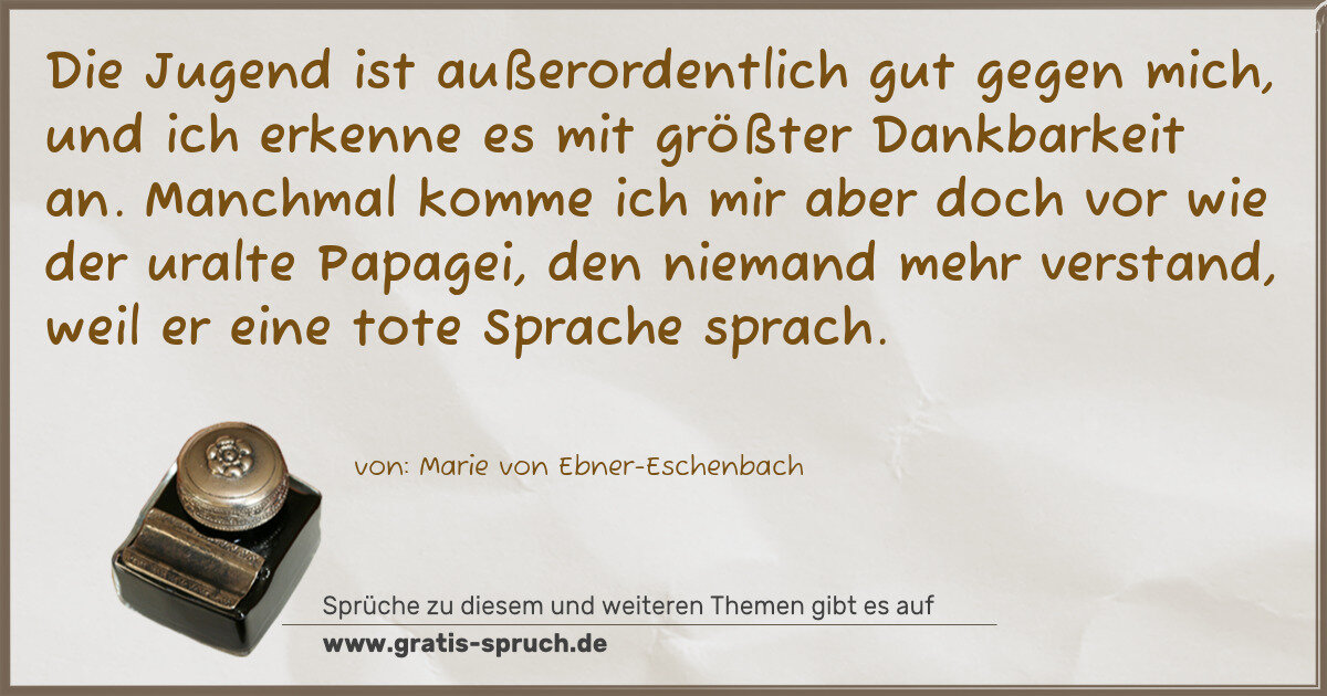 Manchmal komme ich mir aber doch vor wie der uralte Papagei, den niemand mehr verstand, weil er eine tote Sprache sprach.