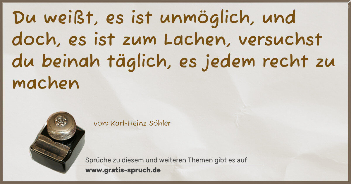 Du weißt, es ist unmöglich, und doch, es ist zum Lachen, versuchst du beinah täglich, es jedem recht zu machen