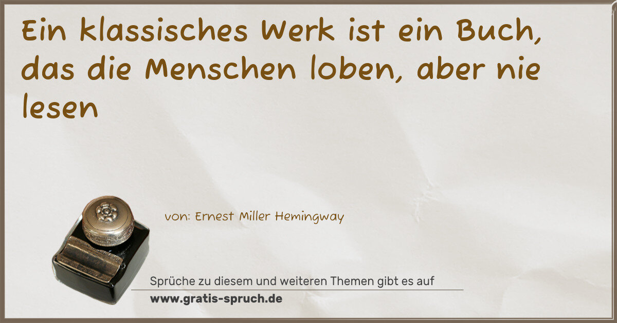 Ein klassisches Werk ist ein Buch, das die Menschen loben, aber nie lesen