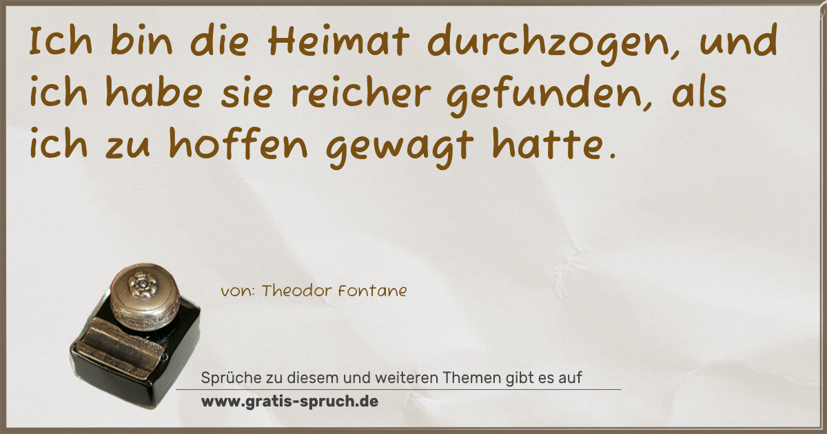 Ich bin die Heimat durchzogen, und ich habe sie reicher gefunden, als ich zu hoffen gewagt hatte.