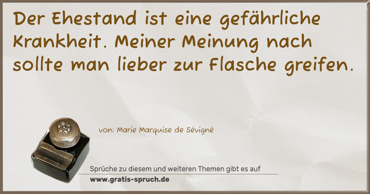 Der Ehestand ist eine gefährliche Krankheit. Meiner Meinung nach sollte man lieber zur Flasche greifen.