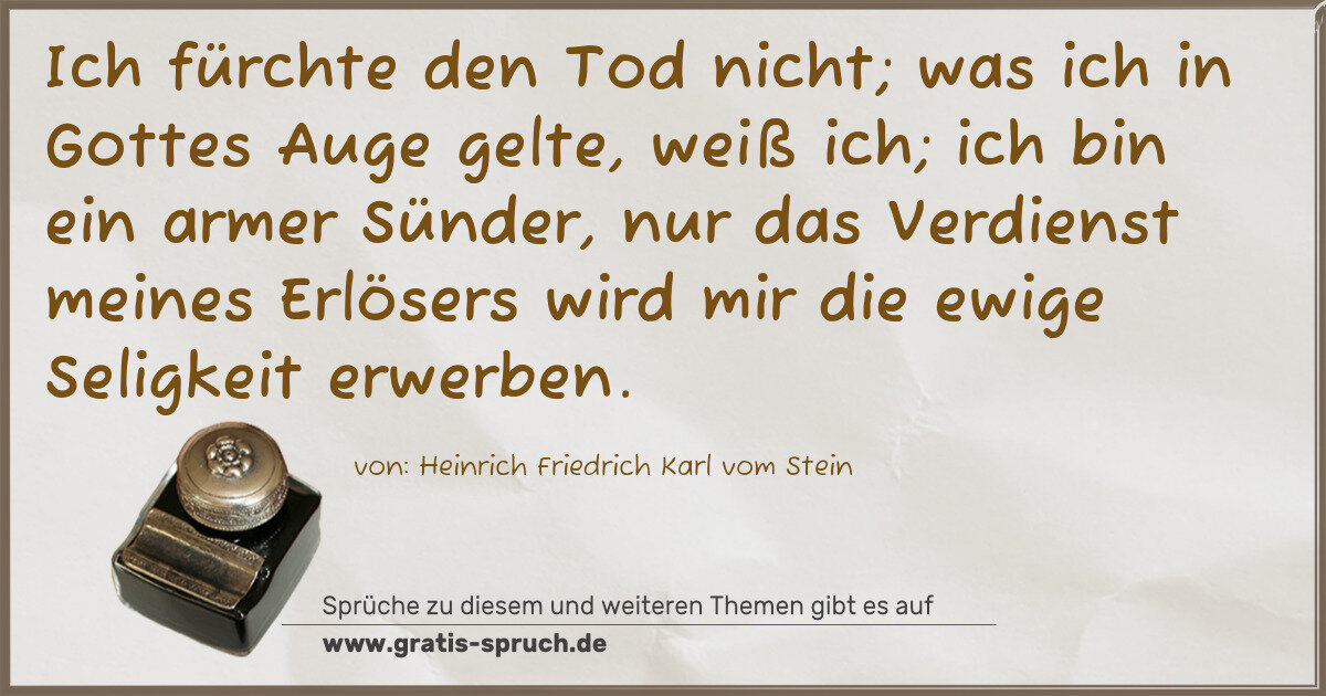 ich bin ein armer Sünder, nur das Verdienst meines Erlösers wird mir die ewige Seligkeit erwerben.