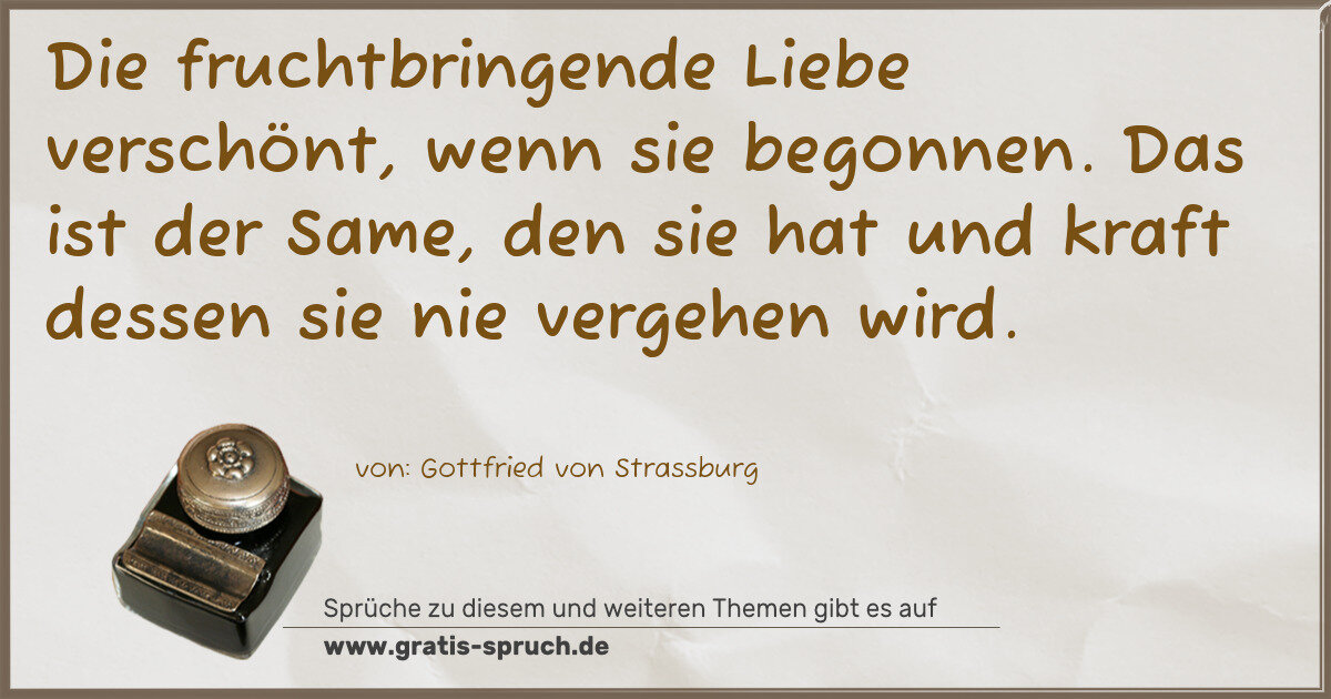 Die fruchtbringende Liebe verschönt, wenn sie begonnen. Das ist der Same, den sie hat und kraft dessen sie nie vergehen wird.