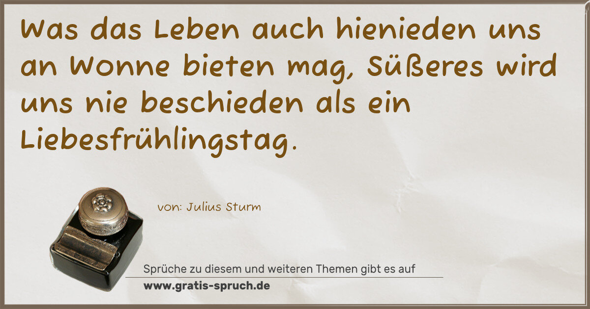 Was das Leben auch hienieden uns an Wonne bieten mag, Süßeres wird uns nie beschieden als ein Liebesfrühlingstag.