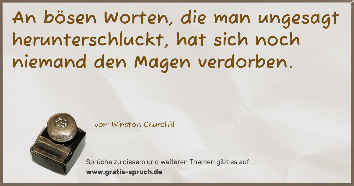 An bösen Worten, die man ungesagt herunterschluckt, hat sich noch niemand den Magen verdorben.