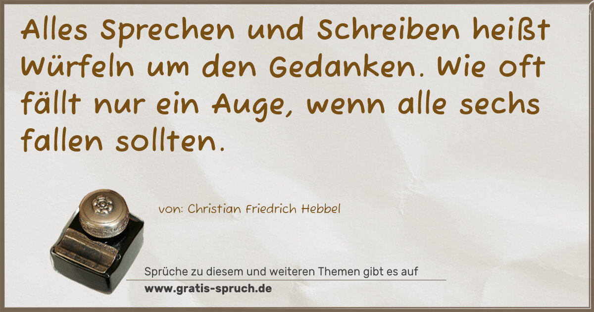 Alles Sprechen und Schreiben heißt Würfeln um den Gedanken. Wie oft fällt nur ein Auge, wenn alle sechs fallen sollten.