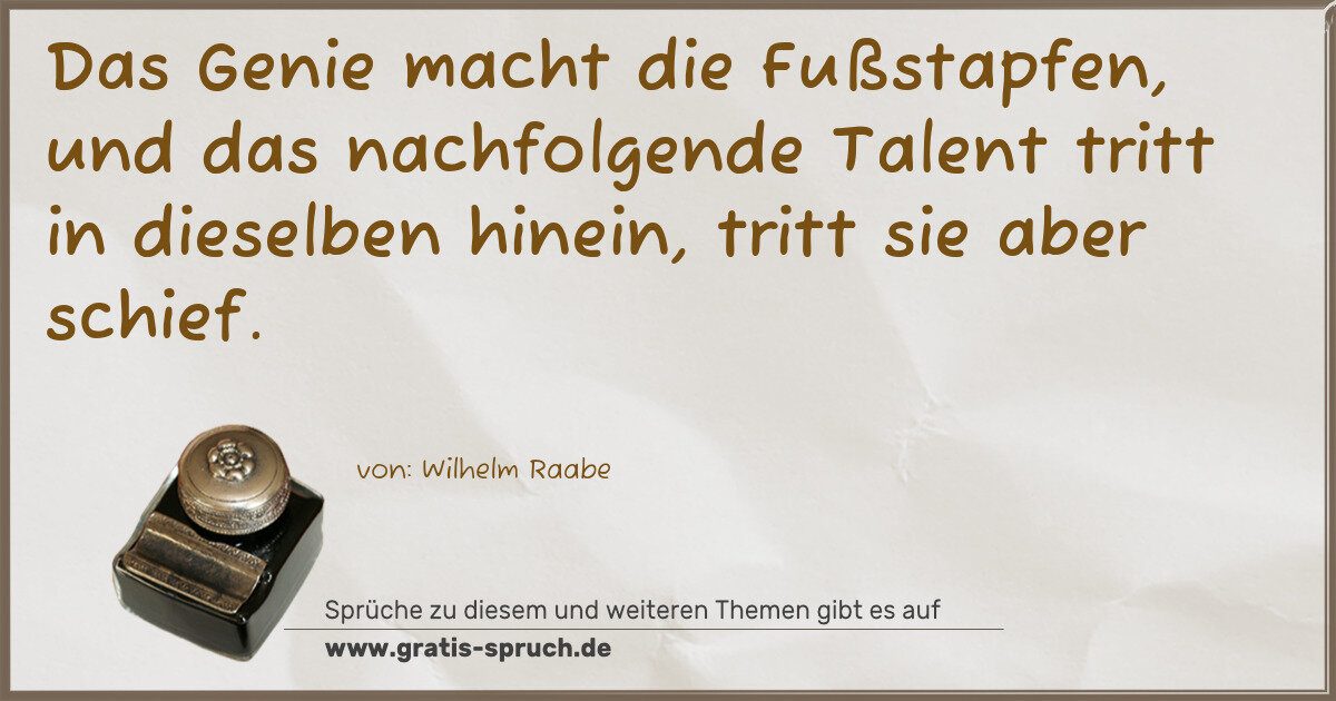 Das Genie macht die Fußstapfen, und das nachfolgende Talent tritt in dieselben hinein, tritt sie aber schief.