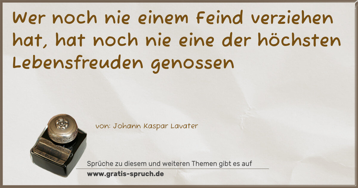 Wer noch nie einem Feind verziehen hat, hat noch nie eine der höchsten Lebensfreuden genossen