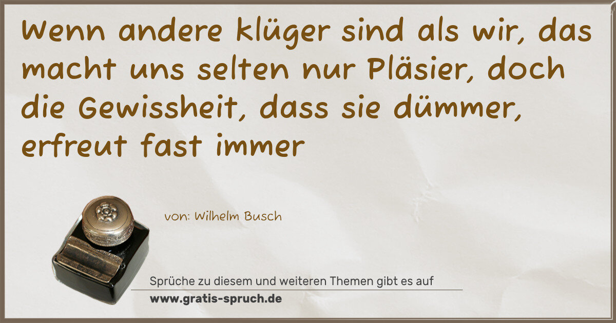 Wenn andere klüger sind als wir, das macht uns selten nur Pläsier, doch die Gewissheit, dass sie dümmer, erfreut fast immer
