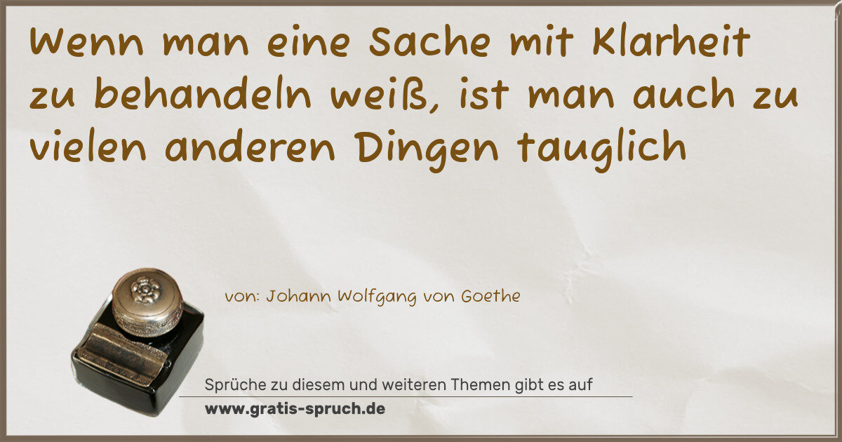 Wenn man eine Sache mit Klarheit zu behandeln weiß, ist man auch zu vielen anderen Dingen tauglich