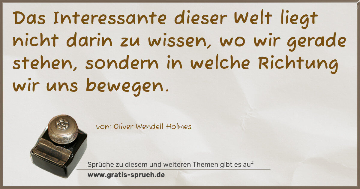 Das Interessante dieser Welt liegt nicht darin zu wissen, wo wir gerade stehen, sondern in welche Richtung wir uns bewegen.