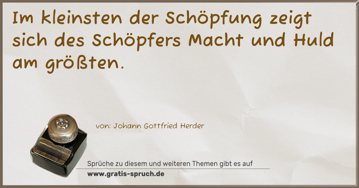 Im kleinsten der Schöpfung zeigt sich des Schöpfers Macht und Huld am größten.