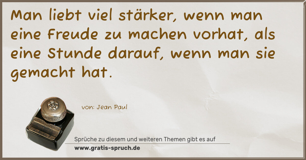 Man liebt viel stärker, wenn man eine Freude zu machen vorhat, als eine Stunde darauf, wenn man sie gemacht hat.