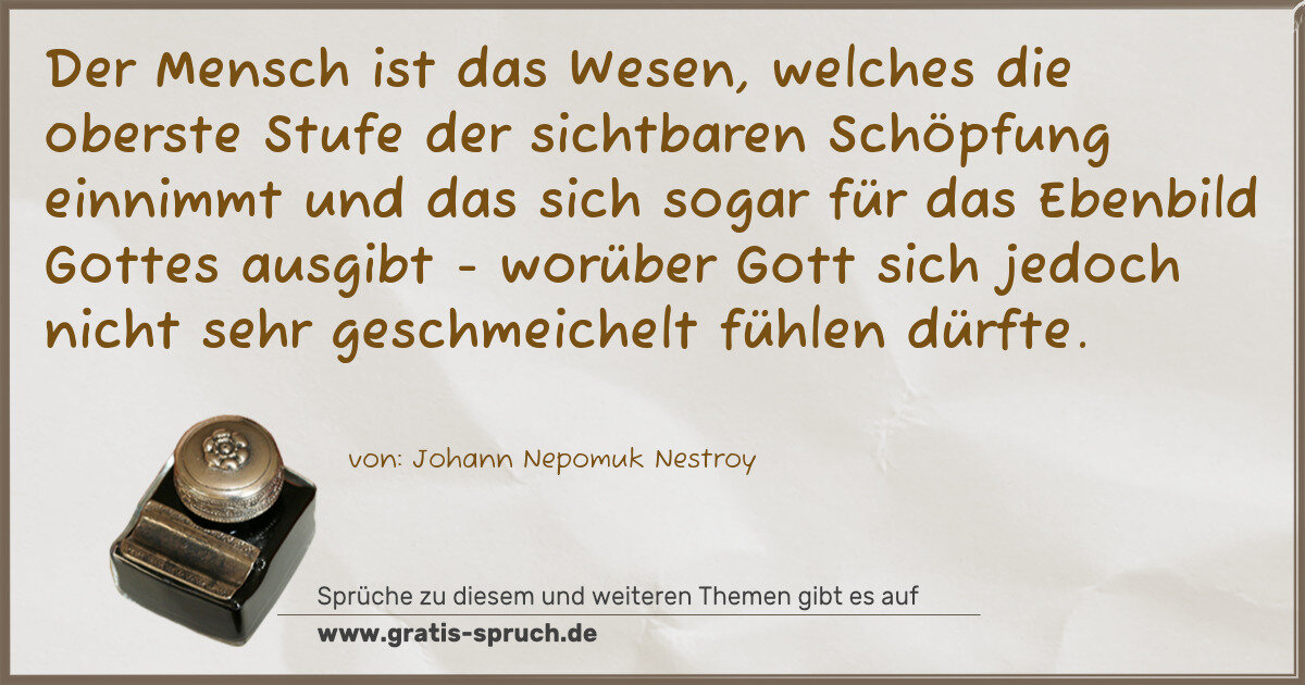 »Der Mensch ist das Wesen, welches die oberste Stufe der sichtbaren Schöpfung einnimmt und das sich sogar für das Ebenbild Gottes ausgibt - worüber Gott sich jedoch nicht sehr geschmeichelt fühlen dürfte.