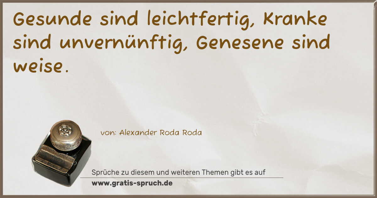 Gesunde sind leichtfertig, Kranke sind unvernünftig, Genesene sind weise.