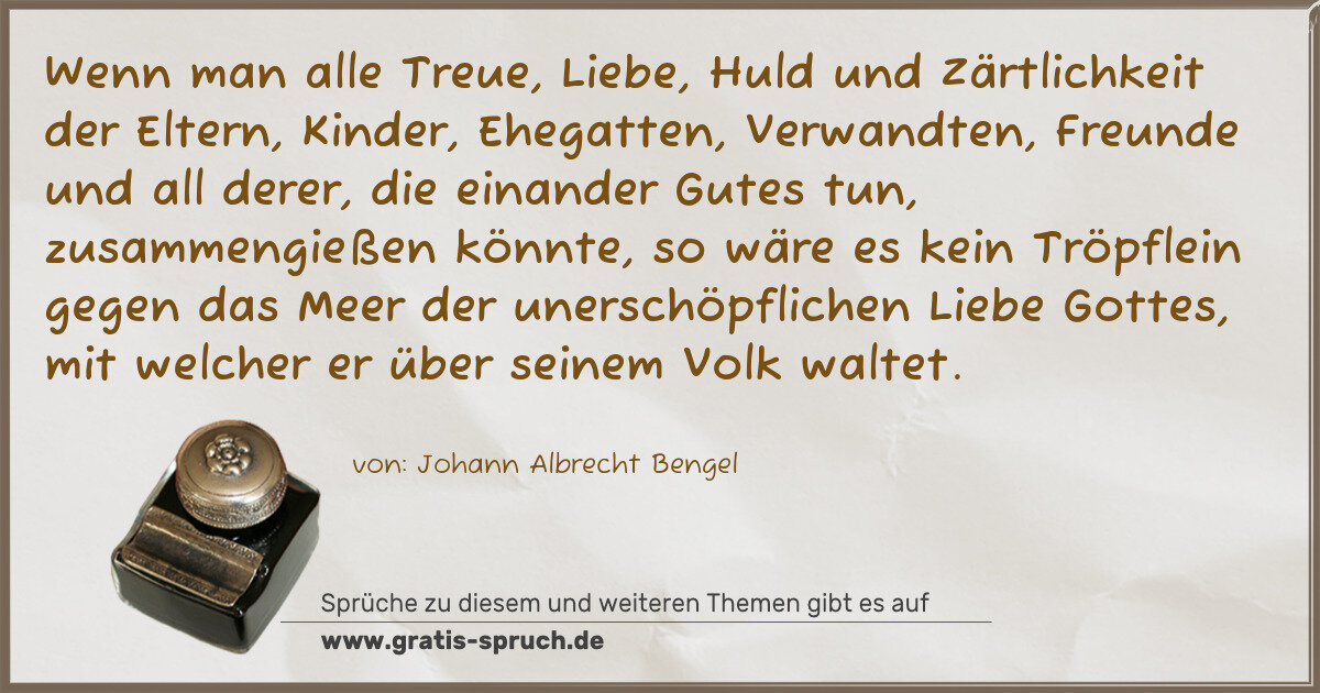 »Wenn man alle Treue, Liebe, Huld und Zärtlichkeit der Eltern, Kinder, Ehegatten, Verwandten, Freunde und all derer, die einander Gutes tun, zusammengießen könnte, so wäre es kein Tröpflein gegen das Meer der unerschöpflichen Liebe Gottes, mit welcher er über seinem Volk waltet.