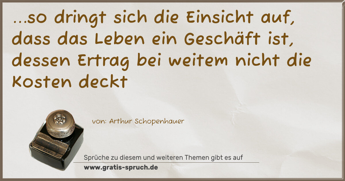 ...so dringt sich die Einsicht auf, dass das Leben ein Geschäft ist, dessen Ertrag bei weitem nicht die Kosten deckt