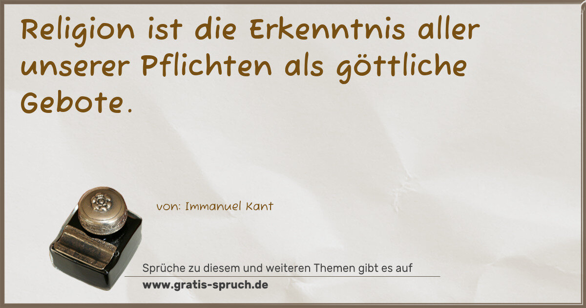 Religion ist die Erkenntnis aller unserer Pflichten als göttliche Gebote.