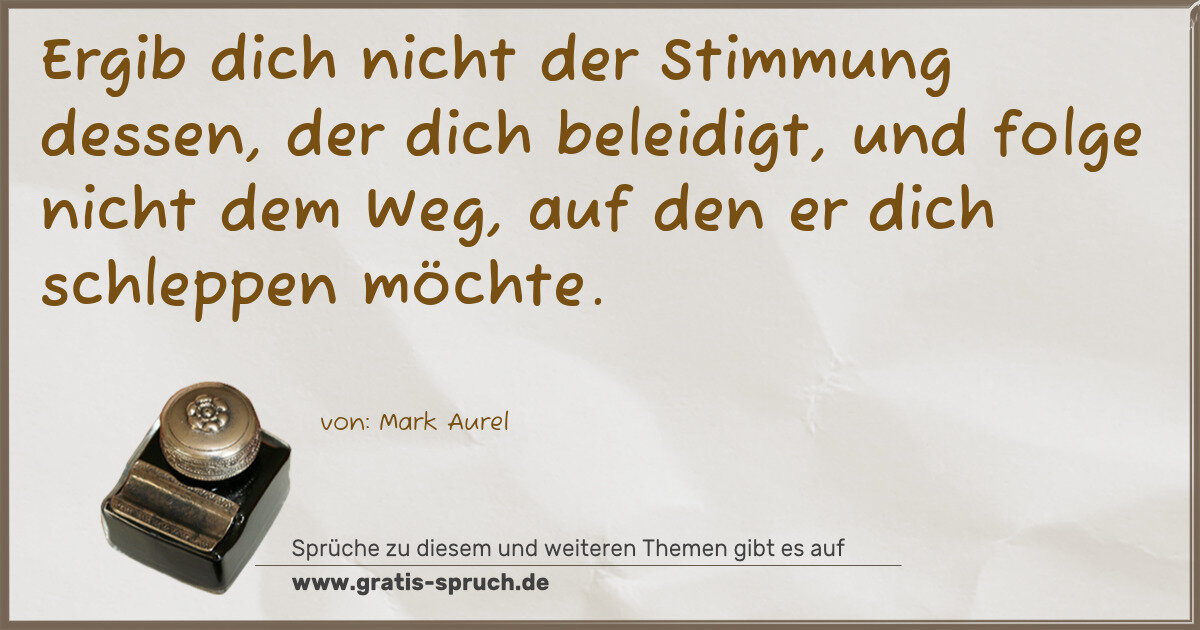 Ergib dich nicht der Stimmung dessen, der dich beleidigt, und folge nicht dem Weg, auf den er dich schleppen möchte.