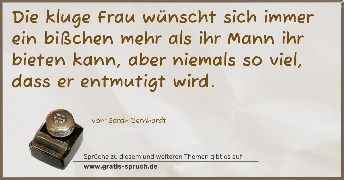 Die kluge Frau wünscht sich immer ein bißchen mehr als ihr Mann ihr bieten kann, aber niemals so viel, dass er entmutigt wird.