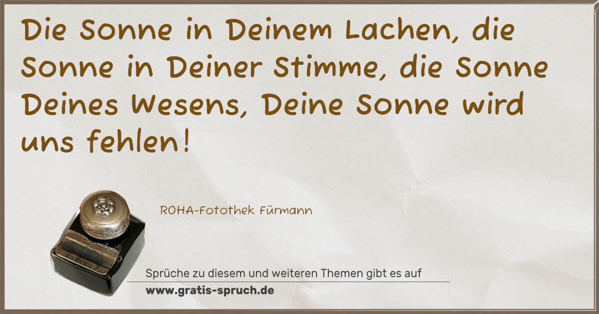 Die Sonne in Deinem Lachen, die Sonne in Deiner Stimme, die Sonne Deines Wesens, Deine Sonne wird uns fehlen!