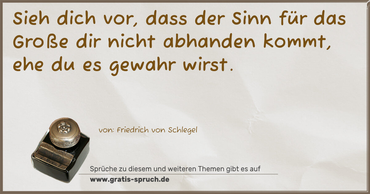 Sieh dich vor, dass der Sinn für das Große dir nicht abhanden kommt, ehe du es gewahr wirst.
