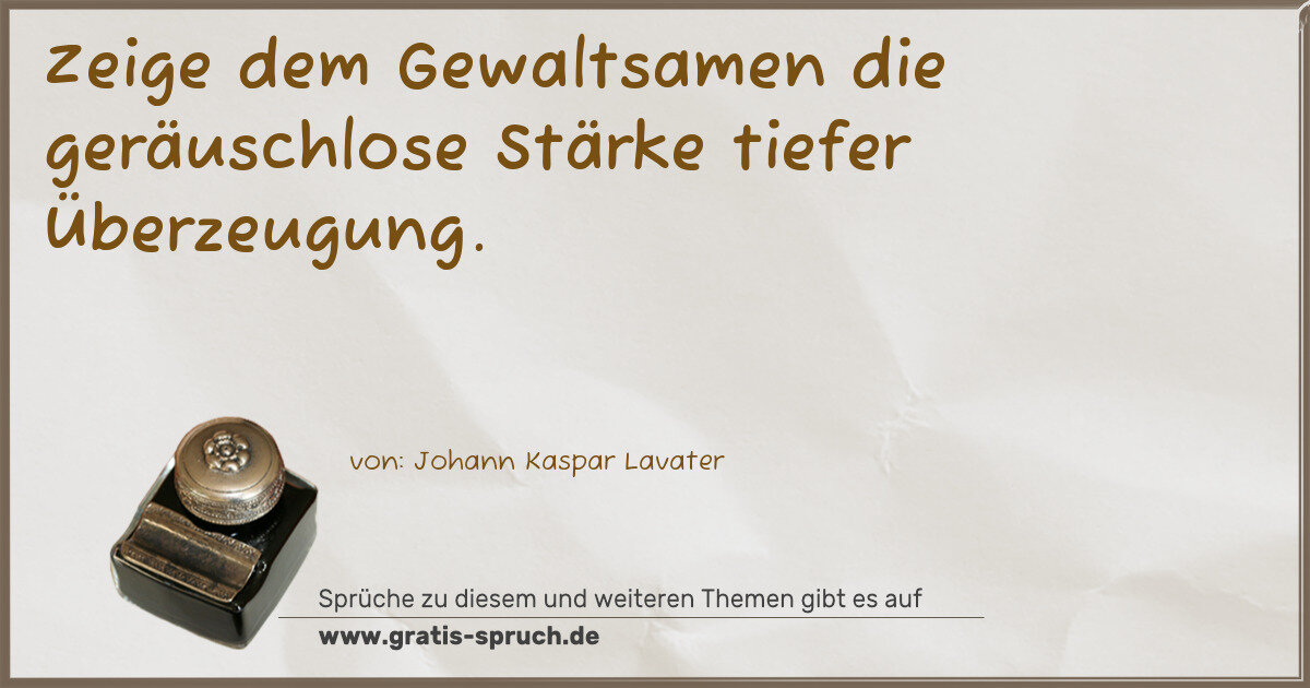 Zeige dem Gewaltsamen die geräuschlose Stärke tiefer Überzeugung.