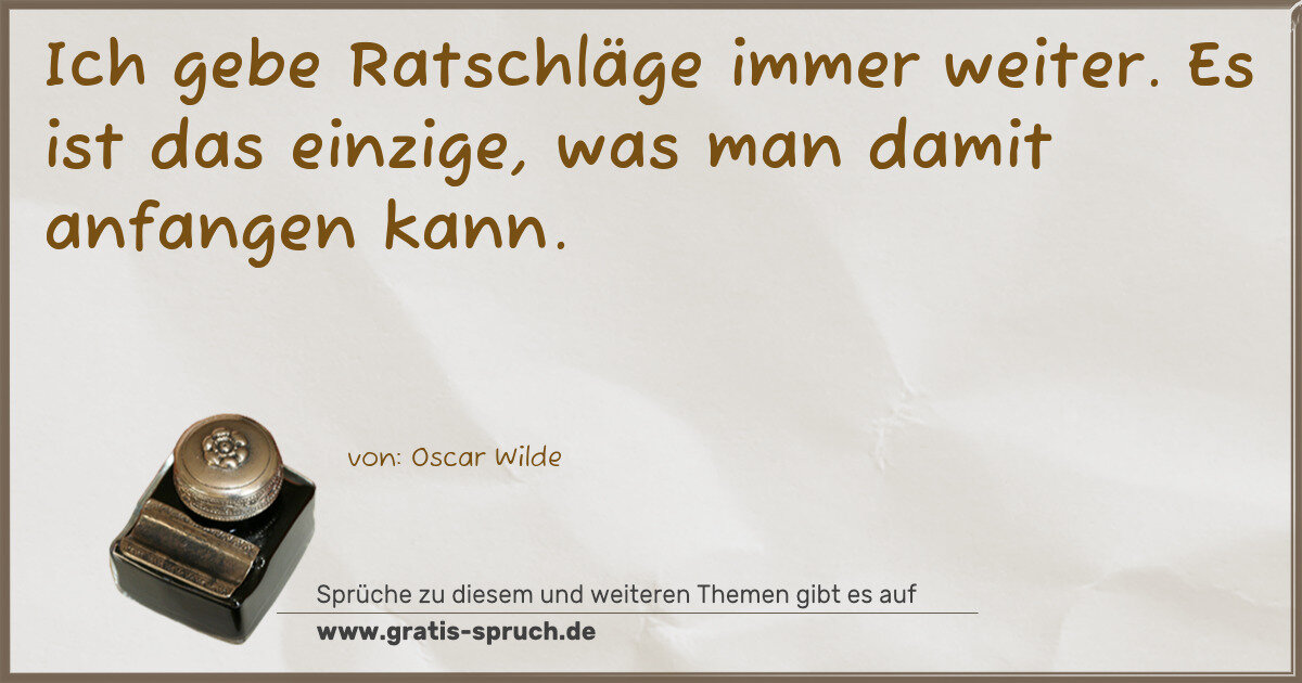 Ich gebe Ratschläge immer weiter. Es ist das einzige, was man damit anfangen kann.