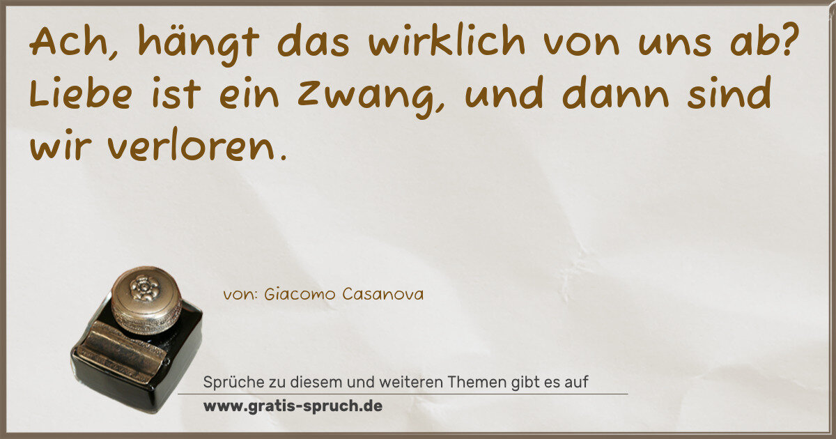 Ach, hängt das wirklich von uns ab? Liebe ist ein Zwang, und dann sind wir verloren.